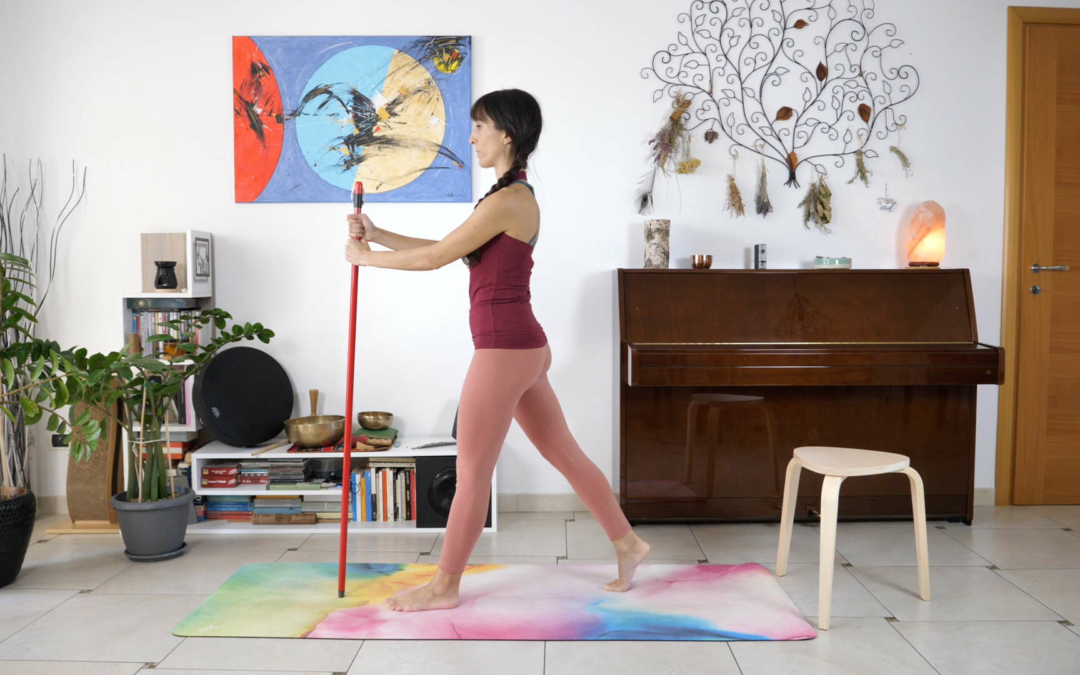 39 min.Scopri il miglior allineamento della tua colonna vertebrale con l'aiuto di un bastone e rinforza tutto il corpo imparando a muoverti in modo funzionale.